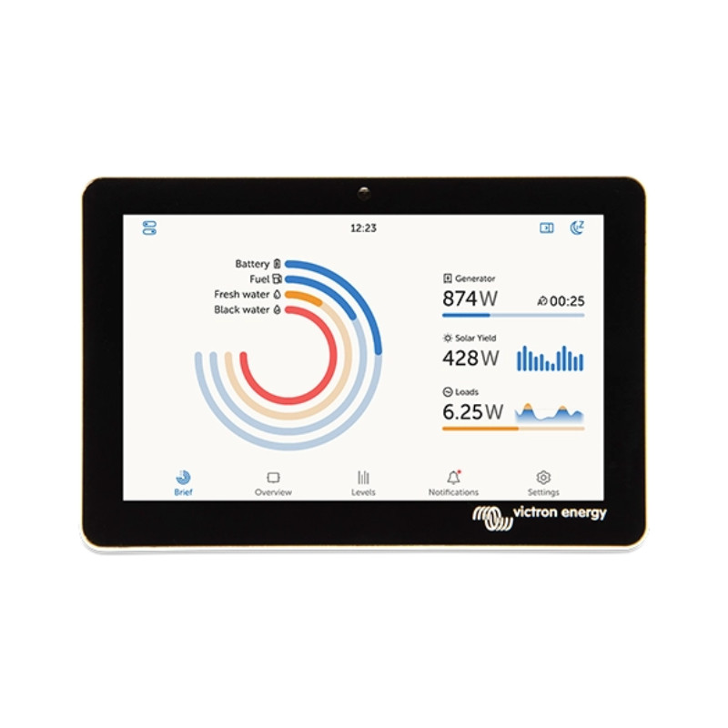 - GX Touch 50 – Dotykowy wyświetlacz do Cerbo GX, umożliwiający wygodną obsługę i monitorowanie systemu energetycznego.