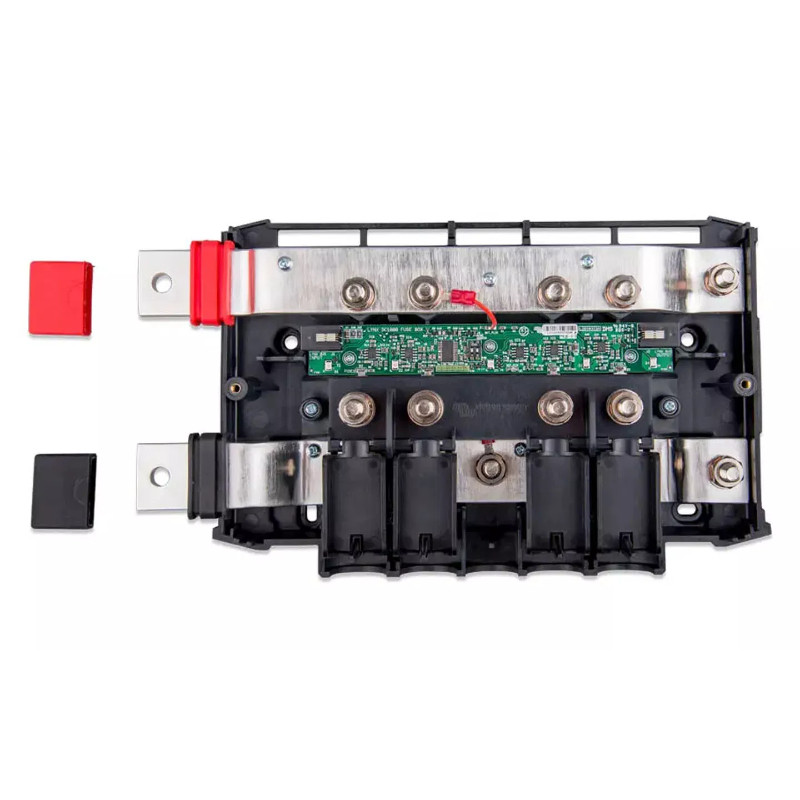 Rozdzielacze Lynx Power In i Lynx Distributor umożliwiają sprawne podłączenie wielu akumulatorów oraz bezpieczne zarządzanie napięciem DC. Rozdzielacz Lynx Power In pozwala na podłączenie do czterech banków akumulatorów, natomiast Lynx Distributor zapewnia możliwość dystrybucji prądu stałego do odbiorników, takich jak falowniki. Dzięki wbudowanym zabezpieczeniom, takim jak bezpieczniki MegaFuse, system jest chroniony przed przeciążeniami. Dodatkowo Lynx Distributor monitoruje stan bezpieczników i informuje o ich pracy za pomocą wskaźników LED.